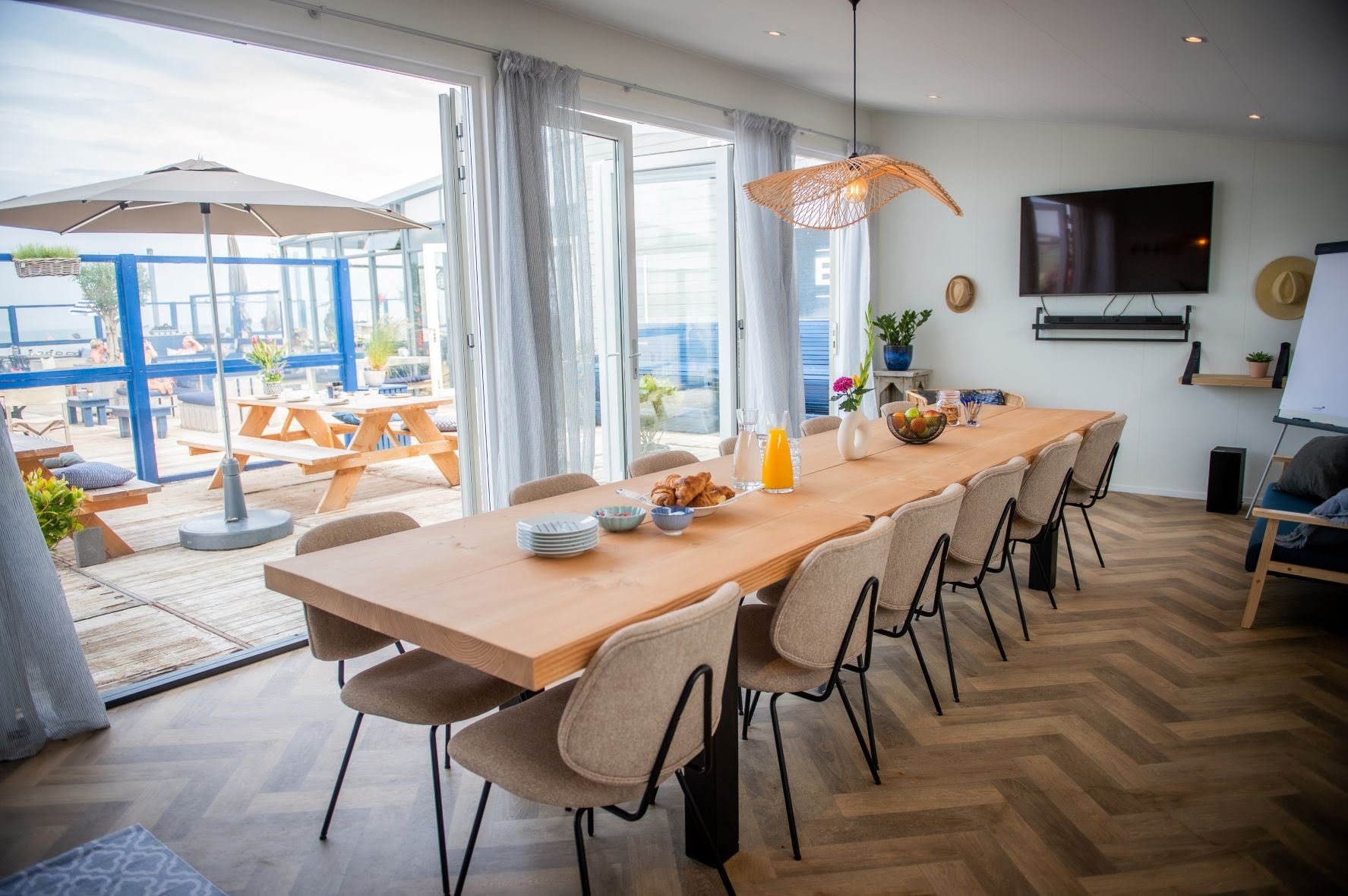 Wil je vergaderen op het strand dan kan dat bij onze Beachclub. Wij hebben een ruim opgezette serre waar in alle rust zakelijke bijeenkomsten georganiseerd kunnen worden. Daarnaast kan je ook vergaderen in de stijlvolle BAIT Meeting Room.